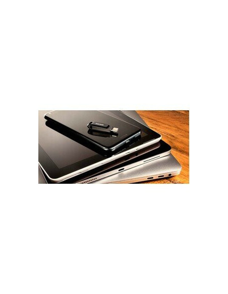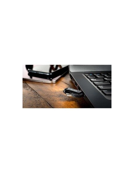 A unidade possui dois conectores, USB Tipo A e USB Tipo C, permitindo que seja utilizada em computadores, tablets e smartphones de diferentes gerações. Esta versatilidade amplia a sua compatibilidade com diversos dispositivos, tanto mais antigos como mais recentes.