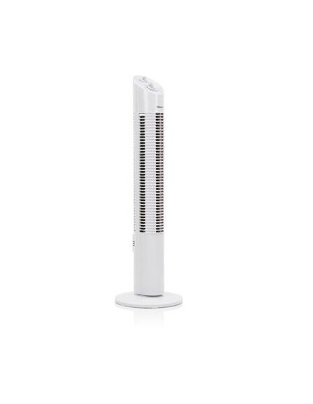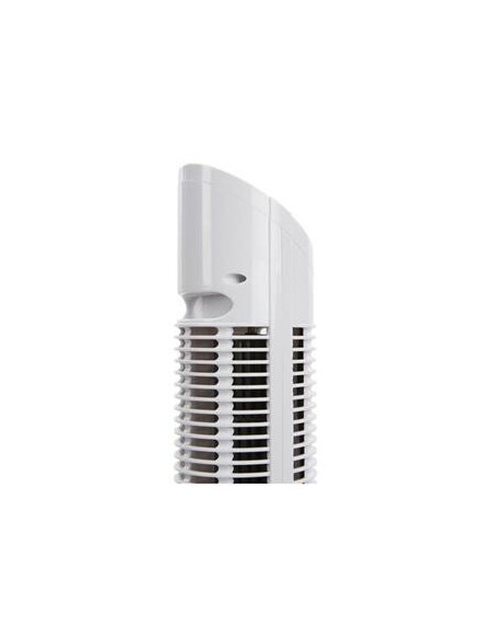 Ventilador de torre elegante y de tamaño compacto que puede colocarse en cualquier habitación de la casa. Con función de oscilación para mantener toda la habitación fresca y temporizador de desconexión automática, ideal para colocar en el dormitorio.
