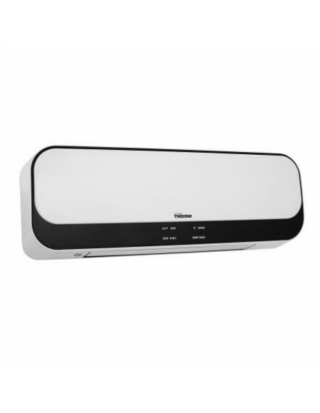 Tristar KA-5075. Tipo: Ventilador eléctrico, Calefacción tipo de elemento: Cerámico, Duración de contador (máximo): 8 h. Adecuado para: Interior, Opciones de colocación: Pared, Color del producto: Negro, Blanco. Potencia de calentamiento: 2000 W. Ancho: 560 mm, Profundidad: 145 mm, Altura: 185 mm