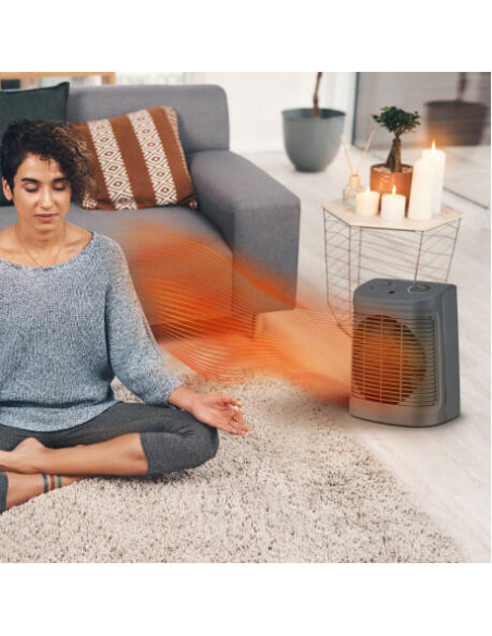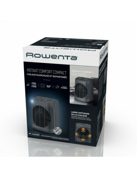 Rowenta Instant Comfort Compact SO2321F2. Tipo: Termoventilador elétrico, País de origem: China, Comprimento do fio: 1,85 m. Adequado para: Interior, Opções de colocação: Chão, Mesa, Cor do produto: Cinzento. Potência de calor: 1800 W, Potência do calor (mín.): 1000 W, Apropriado para divisões até: 20 m². Potência: 1800 W, Voltagem de entrada AC: 220 - 240 V, Frequência de entrada AC: 50 Hz. Largura: 152 mm, Profundidade: 182 mm, Altura: 272 mm