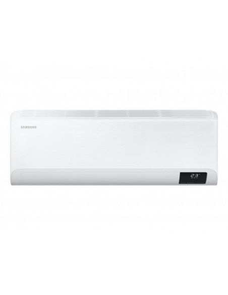 O ar condicionado Samsung F-AR09CBU é um sistema split de parede concebido para proporcionar conforto térmico eficiente e silencioso em ambientes residenciais.  Este modelo destaca-se pela sua elevada eficiência energética, classificado como A++ em refrigeração e A+ em aquecimento (média estação de aquecimento). A capacidade de refrigeração nominal é de 2500W (equivalente a 8530 BTU/h), ideal para espaços de tamanho médio. Em termos de aquecimento, atinge uma capacidade nominal de 3200W, assegurando um aquecimento confortável mesmo em temperaturas mais baixas.  O design destaca-se pelo seu baixo nível de ruído, atingindo apenas 19dB em baixa velocidade, garantindo um ambiente silencioso e relaxante.  Uma das suas grandes vantagens é o controlo Wi-Fi, permitindo ajustar as definições e programar o seu funcionamento através de uma aplicação móvel.  O ar condicionado possui funções adicionais como modo de sono confortável, temporizador e autoventilação para limpeza do sistema.  Para uma maior qualidade do ar, o F-AR09CBU integra um filtro de ar antibacteriano. O ar condicionado opera com o refrigerante R32, conhecido pela sua compatibilidade ambiental. Os seus níveis de ruído são de 63dB em alta velocidade na unidade interior e 64dB na unidade exterior.  As dimensões da unidade interna são 820 x 299 x 215 mm e as da unidade exterior são 66 x 24.2 x 47.5 cm. O peso da unidade interna é de 9.1 kg e da exterior de 22.6 kg. Inclui um comando remoto e manual do utilizador. O sistema suporta o funcionamento contínuo 24 horas por dia, 7 dias por semana.