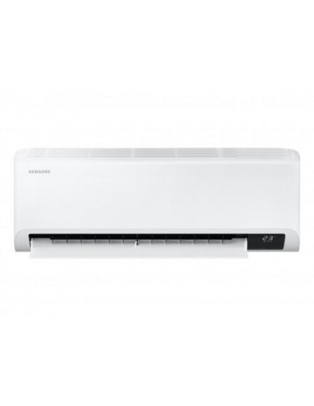 O sistema de ar condicionado Samsung F-AR09CBU é um modelo split de parede com capacidade de refrigeração de 2,5 kW e capacidade de aquecimento de 3,2 kW.  Oferece eficiência energética A++ em refrigeração e A+ em aquecimento (média estação), com baixo nível de ruído (19dB em baixa velocidade). Controlado via Wi-Fi, este ar condicionado inclui funcionalidades como modo de sono confortável e temporizador.  É um sistema completo, com filtro de ar antibacteriano e funcionamento 24/7.