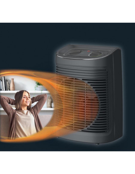 O Rowenta Instant Comfort SO6511F2 é um calefator elétrico que combina potência e praticidade para aquecer seu ambiente de forma eficiente. Com uma potência de 2200W, este dispositivo aquece rapidamente, proporcionando conforto térmico em pouco tempo. Possui duas configurações de potência (1200W e 2200W), permitindo ajustar a intensidade do calor de acordo com a necessidade. O sistema de segurança contra sobreaquecimento garante a proteção do aparelho e a sua segurança. Seu design compacto e portátil permite fácil movimentação e armazenamento. O calefator é adequado para aquecer divisões até 35m², tornando-se uma solução ideal para aquecer salas de estar, quartos e escritórios. Fácil de usar e com um design elegante em cinza, o Rowenta Instant Comfort SO6511F2 é a escolha perfeita para quem busca conforto e praticidade no aquecimento da sua casa. A sua praticidade inclui ainda a proteção contra salpicos (IP21), o que torna a sua utilização segura mesmo em zonas húmidas. Possui um cabo com 1,85m de comprimento e pesa apenas 2,22kg, tornando-o fácil de transportar e armazenar.