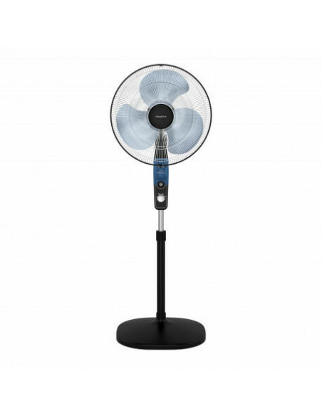 Rowenta Essential+ VU4420F0. Tipo: Ventoinha doméstica com lâminas, Cor do produto: Preto, Azul, Localização: Chão. Tipo de fonte de alimentação: AC, Frequência de entrada AC: 50 - 60 Hz. Largura: 450 mm, Profundidade: 425 mm, Altura: 1300 mm. Comprimento da embalagem: 225 mm, Largura da embalagem: 540 mm, Altura da embalagem: 455 mm. Quantidade por recipiente intermodal (20 pés): 520 unidade(s), Quantidade por recipiente intermodal (40 pés): 1070 unidade(s), Largura da palete: 80 cm