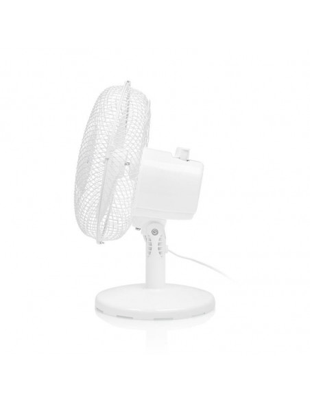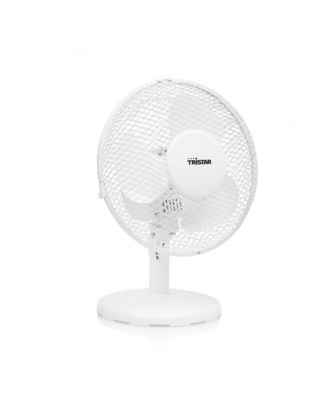Tristar VE-5721. Tipo: Ventoinha doméstica com lâminas, Cor do produto: Branco, Localização: Mesa. Tipo de fonte de alimentação: AC, Consumo de energia (típico): 30 W, Voltagem de entrada AC: 220-240 V. Largura: 245 mm, Profundidade: 275 mm, Altura: 375 mm ;