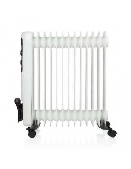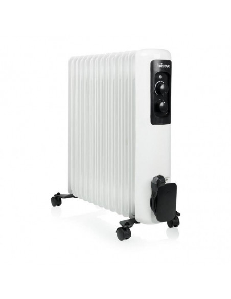 Tristar KA-5183. Tipo: Aquecedor elétrico a óleo, Tipo de elemento de aqueciemento: Óleo, Comprimento do fio: 1,5 m. Adequado para: Interior, Opções de colocação: Chão, Cor do produto: Branco. Potência de calor: 2500 W, Indicado para divisões com volume até: 75 m³, Apropriado para divisões até: 30 m². Potência: 2500 W, Voltagem de entrada AC: 240 V, Frequência de entrada AC: 50 - 60 Hz. Largura: 230 mm, Profundidade: 570 mm, Altura: 600 mm. ;