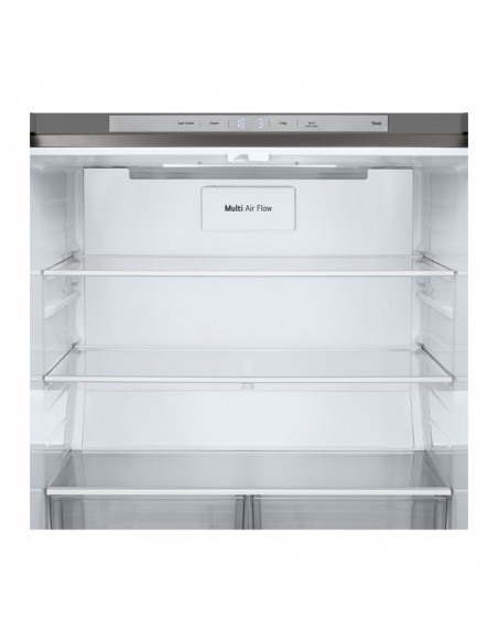 LG GMB860PYDE. Local de colocação: Independente, Design de produto: Porta múltipla, Cor do produto: Prateado. Capacidade total líquida: 530 l, Classe climática: T, Classe de emissão de ruído: C. Capacidade líquida do frigorífico: 321 l, Tipo de lâmpada: LED. Capacidade líquida do congelador: 209 l, Posição de congelador: Inferior, Capacidade de congelação: 10 kg/24h. Aplicações de controlo suportadas: LG ThinQ ;