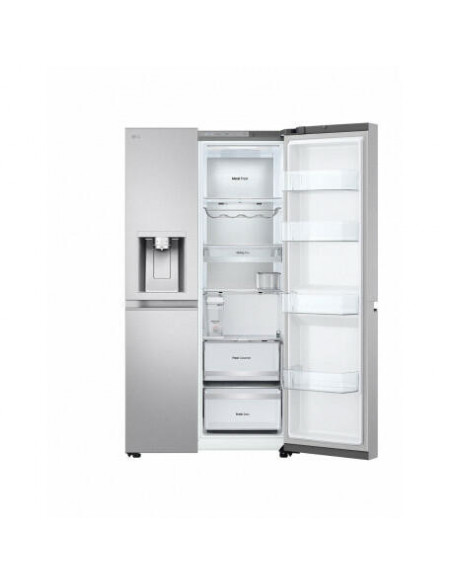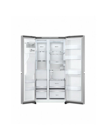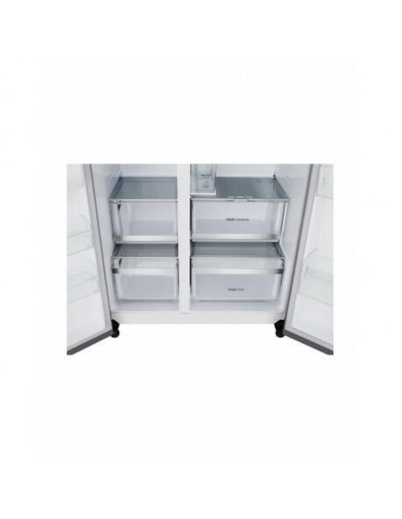LG GSLE91MBAC. Local de colocação: Independente, Design de produto: Porta americana, Cor do produto: Metálico. Capacidade total líquida: 628 l, Classe climática: T, Classe de emissão de ruído: B. Capacidade líquida do frigorífico: 407 l, Tipo de lâmpada: LED. Capacidade líquida do congelador: 221 l, Posição de congelador: Lateral, Capacidade de congelação: 12 kg/24h. Classe de eficiência energética: C, Consumo de energia anual: 224 kWh, Escala de eficiência energética: A a G