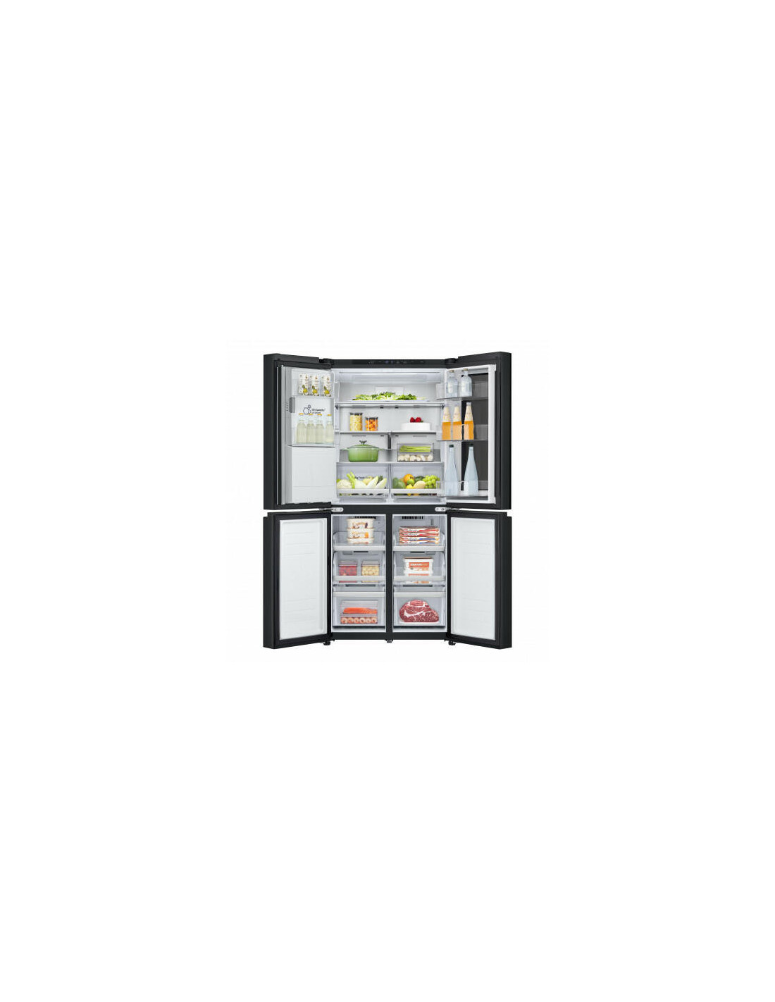 LG InstaView GMG860EPBE. Local de colocação: Independente, Design de produto: Porta múltipla, Cor do produto: Preto. Capacidade total líquida: 508 l, Classe climática: T, Classe de emissão de ruído: C. Capacidade líquida do frigorífico: 288 l, Tipo de lâmpada: LED. Capacidade líquida do congelador: 220 l, Posição de congelador: Inferior, Capacidade de congelação: 10 kg/24h. Aplicações de controlo suportadas: LG ThinQ
