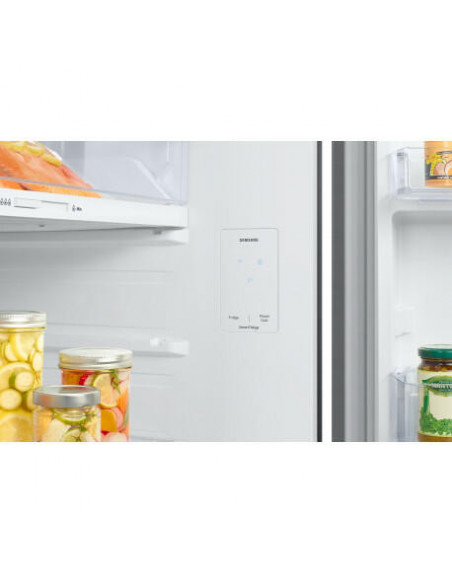 Samsung RT47CG6626S9. Dobradiça da porta: Direita. Classe climática: ST-T, Nível de ruído: 39 dB. Sistema no-frost (frigorífico), Sistema multi-airflow (frigorífico), Luz interior do frigorífico, Prateleiras do frigorífico: 3, Número de gavetas para legumes: 1. Capacidade de congelação: 5 kg/24h, Sistema no-frost (congelador). Compartimento de zona fresca. Classe de eficiência energética: E, Consumo de energia anual: 257 kWh. Cor do produto: Aço inoxidável