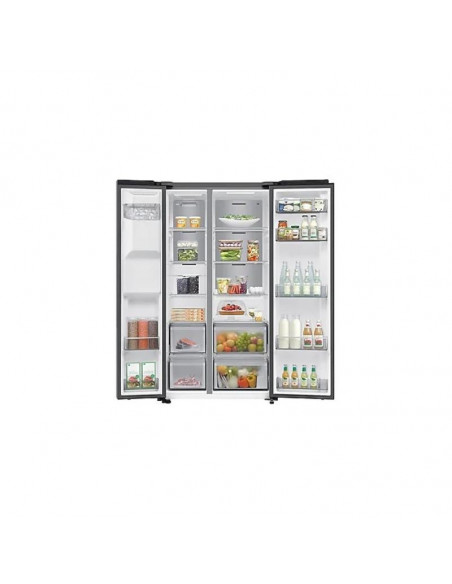 Samsung RS70F64KDT. Local de colocação: Independente, Design de produto: Porta americana, Cor do produto: Aço inoxidável. Capacidade total líquida: 640 l, Classe climática: ST, Classe de emissão de ruído: C. Capacidade líquida do frigorífico: 420 l, Tipo de lâmpada: LED. Capacidade líquida do congelador: 220 l, Posição de congelador: Lateral, Capacidade de congelação: 13 kg/24h. Aplicações de controlo suportadas: SmartThings ;