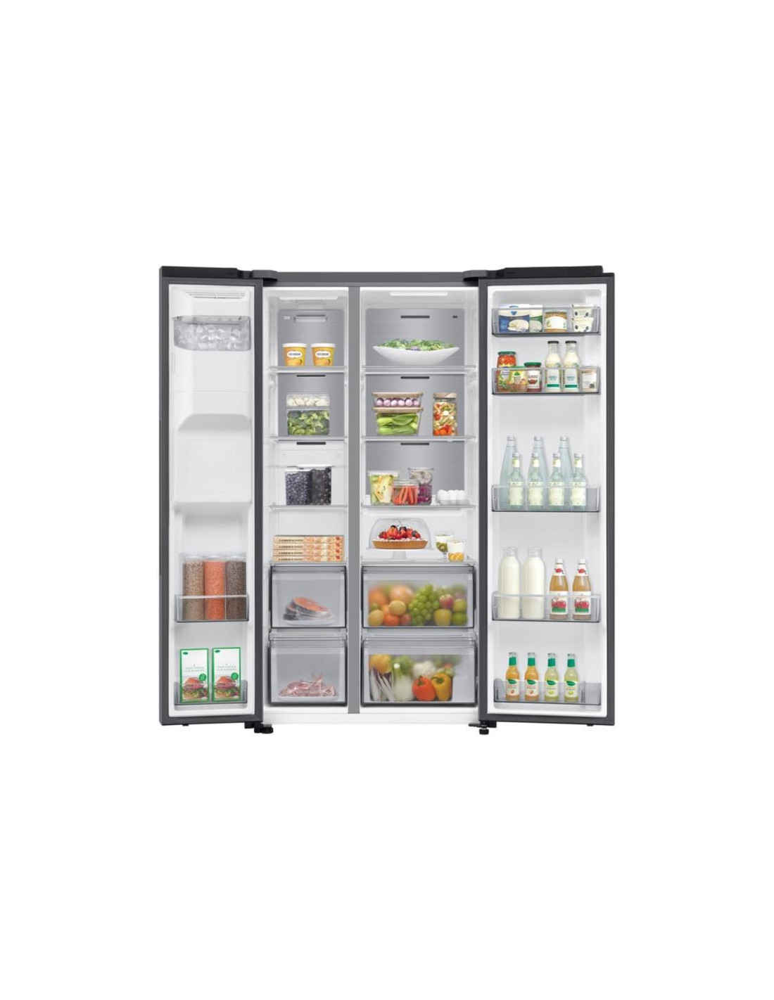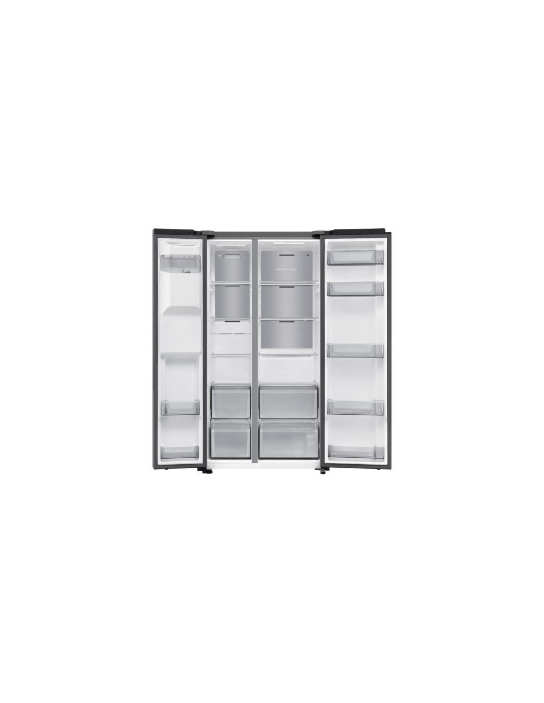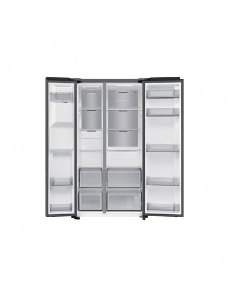 Samsung RS70F64KET. Local de colocação: Independente, Design de produto: Porta americana, Cor do produto: Aço inoxidável. Capacidade total líquida: 640 l, Classe climática: ST, Classe de emissão de ruído: C. Capacidade líquida do frigorífico: 420 l, Tipo de lâmpada: LED. Capacidade líquida do congelador: 220 l, Posição de congelador: Lateral, Capacidade de congelação: 13 kg/24h. Aplicações de controlo suportadas: SmartThings ;