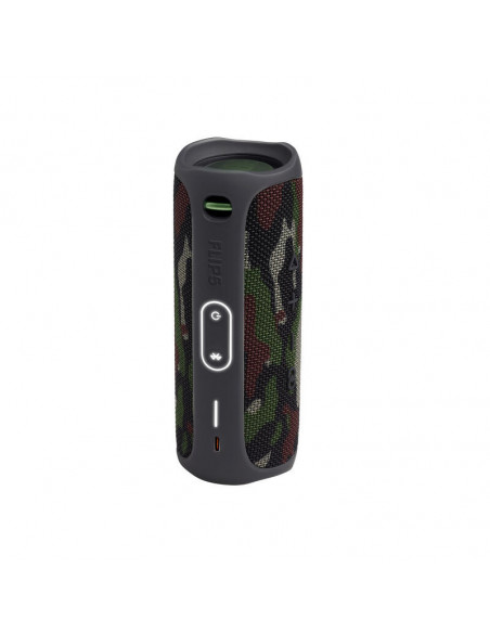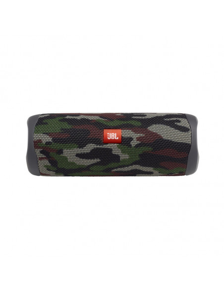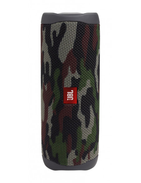 Altavoz portátil inalámbrico JBL FLIP 5 acabado en color squad, 20W de potencia de salida, amplificador integrado, conexión inalámbrica Bluetooth 4.2, hasta 12 horas de autonomía, resistentes al agua (IPX7), combina 2 altavoces con JBL PartyBoost, fabricado con tela y goma resistente.