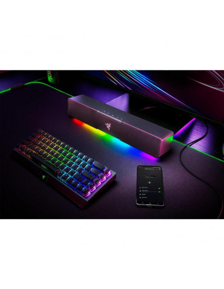 A Razer Leviathan V2 X é uma barra de som compacta e potente, perfeita para melhorar a experiência de áudio do seu computador. Com conectividade sem fios e com fios, oferece flexibilidade e versatilidade. O seu design elegante e discreto integra-se perfeitamente em qualquer ambiente.