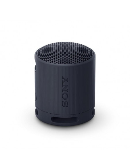 Altifalante portátil Sony SRS-XB100, com conectividade Bluetooth 5.3, bateria de 16 horas e resistência à água e pó (IP67). Ideal para uso em ambientes diversos.