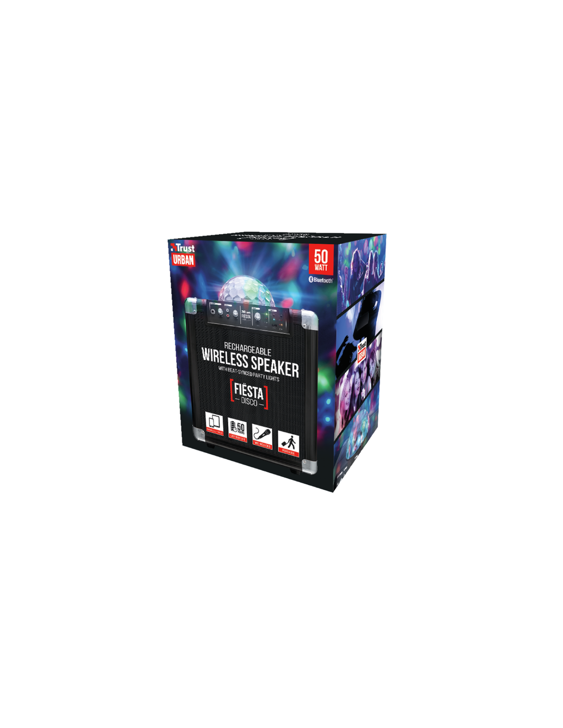 Coluna de Som Trust Fiësta Disco Wireless BT USRC - 50W, Bluetooth, Show de Luzes e Microfone