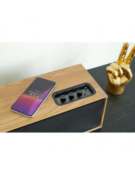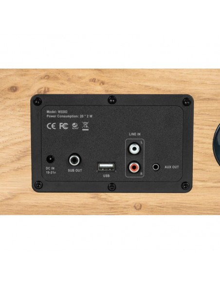 Uma coluna poderosa e estética Aqui está uma coluna Bluetooth com uma caixa de madeira cuja acústica é ideal. Com graves potentes e agudos ajustáveis ?? de forma independente, o WS702 desenvolve 150 Watts para uma audição ideal de todas as suas fontes de áudio: Bluetooth, TV, USB, entrada auxiliar. Você pode conectá-lo à sua TV, consola de videojogos , PC ou até mesmo um gira-discos.Características: Bluetooth® 5.0,Potência musical total: 150 Watts,Entrada RCA (cabo incluído),Entrada de áudio da TV,Entrada óptica digital audio (cabo incluído),Entrada USB,AUX-OUT e conectores para subwoofer adicional,Equalizador de controle remoto (música, filme, voz)Fonte de alimentação de 230 V (adaptador DC 19 V / 1,8 A incluído),Frente removível ;