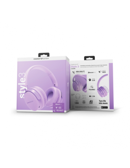 Auscultadores Energy Sistem Style 3 Lavender: Bluetooth 5.1, 25h Autonomia, Dobráveis