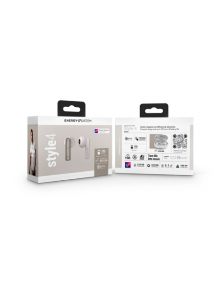 Os auscultadores Energy Sistem Style 4 True Wireless na cor creme são uma opção prática e acessível para quem procura auscultadores sem fios de qualidade. O seu design compacto e leve torna-os confortáveis para uso prolongado.  A caixa de carregamento incluída permite carregar os auscultadores e prolonga significativamente a sua autonomia.