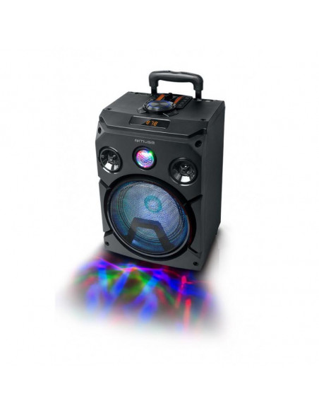 Muse M-1915 DJ. Classificação de Energia RMS: 150 W. Modelo: Sistema de endereço público (PA), Cor da caixa: Preto, Material do corpo do produto: Madeira. Tecnologia da conectividade: Com fios e sem fios, Alcance Bluetooth: 10 m. Tipo de fonte de alimentação: CA, Voltagem de entrada de AC: 100 - 240 V, Frequência de entrada AC: 50 / 60 Hz. Largura do produto: 286 mm, Profundidade da Unidade: 287 mm, Altura da Unidade: 464 mm ;