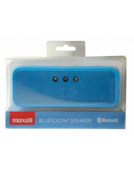 Maxell MXSP-BT03. Classificação de Energia RMS: 6 W, Extensão da frequência: 20 - 20000 Hz. Tecnologia da conectividade: Com fios e sem fios, Conectividade de série: Bluetooth/USB/3.5 mm, Perfis Bluetooth: A2DP,HFP,HSP. Cor da caixa: Azul, Design: Coluna soundbar, Controlo do volume: Digital. Uso recomendado: Universal, Compressão de áudio: apt-X. Tipo de fonte de alimentação: Bateria, Tipo de bateria: Interno, Tempo de funcionamento a pilhas: 15 h