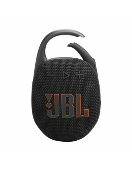 JBL Clip 5. Diâmetro das colunas: 4,5 cm. Classificação de Energia RMS: 7 W, Extensão da frequência: 90 - 20000 Hz, Rácio Signal-to-Noise (SNR): 85 dB. Tecnologia de conetividade: Sem fios, Intervalo de frequência: 2,4 - 2,4835 GHz, Perfis Bluetooth: A2DP, AVRCP. Tipo de produto: Coluna portátil mono, Cor do produto: Preto, Funcionalidades de proteção: À prova de água. Uso recomendado: Universal