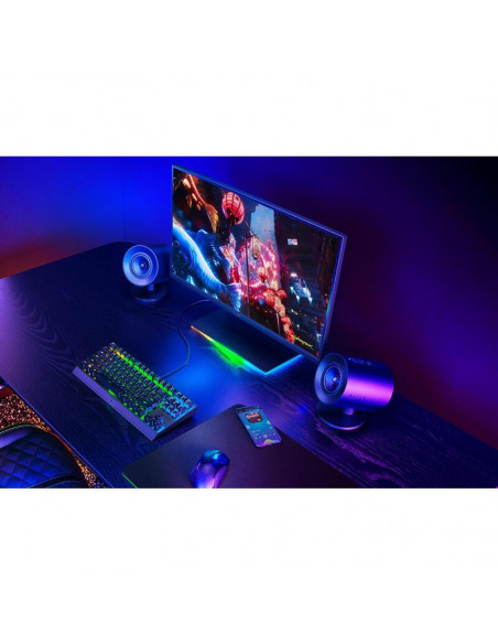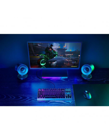 As colunas Razer Nommo V2 X elevam a sua experiência de áudio para um novo nível, proporcionando um som rico, claro e envolvente. Com um design elegante e compacto, estas colunas são ideais para qualquer ambiente de jogo ou trabalho, combinando desempenho excecional com um aspeto sofisticado.