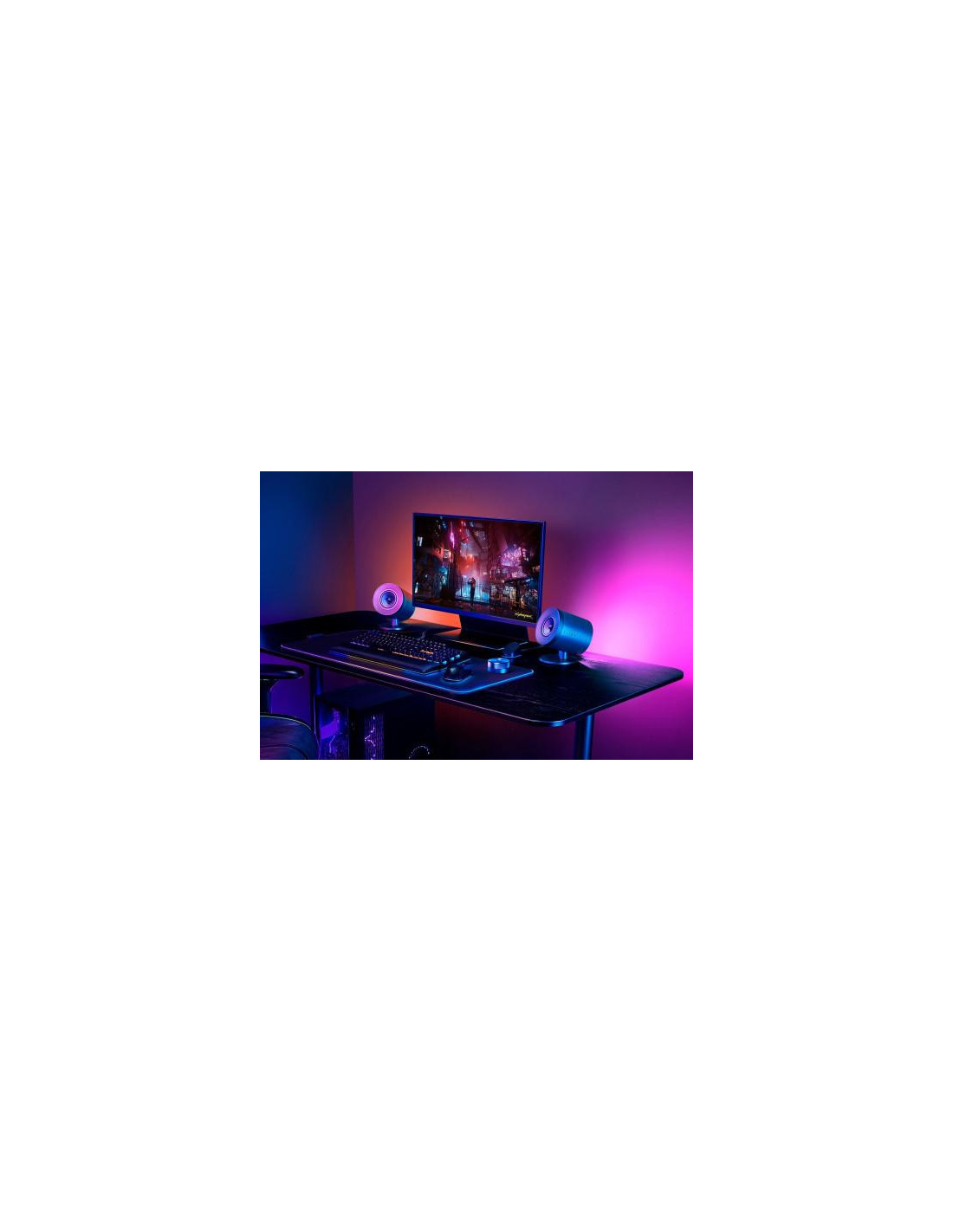 As Colunas Razer Nommo V2 Pro (RZ05-04740100-R3G1) são um sistema de som 2.1 concebido para utilização em PC. Oferece uma experiência auditiva rica e imersiva, graças ao seu sistema de som de alcance completo. As colunas são configuráveis em modo sem fios e com fios, oferecendo flexibilidade na sua utilização. O sistema inclui três componentes: dois satélites e um subwoofer, que trabalham em conjunto para produzir um som equilibrado e potente, cobrindo um vasto espectro de frequências. Este sistema cobre um alcance de frequência que se estende de 40 Hz a 20000 Hz, assegurando uma reprodução precisa de graves, médios e agudos. A conectividade é um ponto forte deste sistema, permitindo ligação sem fios através de Bluetooth 5.3 e ligação com fios através de cabo USB tipo C. O design é minimalista e elegante, com um acabamento em preto, que se integra facilmente em qualquer ambiente. As dimensões compactas (130 mm de largura, 181 mm de profundidade e 184 mm de altura) e o peso de 2,65 kg tornam as colunas facilmente posicionáveis na sua secretária ou mesa. A iluminação integrada adiciona um toque de estilo e personalização. Em resumo, as Razer Nommo V2 Pro oferecem uma solução de som de alta qualidade para PC, combinando desempenho excecional com um design elegante e funcional.