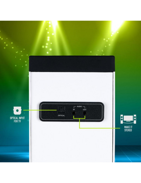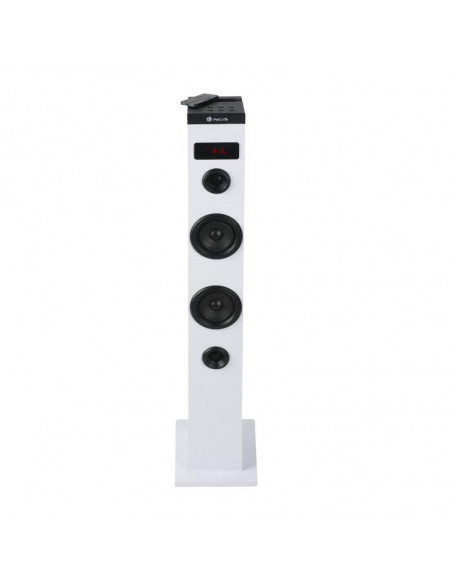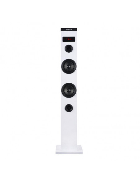 NGS TOWER SPEAKER SKY CHARM WHITE TORRE DE SOM 50W COMPATÍVEL COM A TECNOLOGIA BLUETOOTH- USB, RADIO FM E AUX IN. TELECOMANDO O NGS Sky Charm White é um elegante sistema de som em forma de torre, com 50W de potência e compatível com a tecnologia sem fios Bluetooth. Poderá controlar a torre de som a partir dos seus dispositivos externos, uma vez que terá várias alternativas de ligação à sua disposição: entrada ótica para conectar à TV, compatível com Bluetooth, entrada de áudio USB, Radio FM e AUX IN.Este sistema destaca-se pelo seu design estilizado e elegante, com acabamentos em tons brancos e uma base de apoio que fica bem em qualquer canto da casa; além disso, dispõe de acabamentos em madeira de elevada qualidade, que permitem alcançar u(...)
