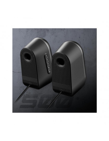 A sua conectividade dual, sem fios (via Bluetooth 5.1 com alcance de 10m) e com fios (através de um conector de 3,5mm), proporciona flexibilidade de utilização, permitindo ligar as colunas a diversos dispositivos, como computadores, smartphones e tablets. A potência de 3W RMS garante um som suficiente para a maioria dos cenários de uso doméstico ou de escritório.