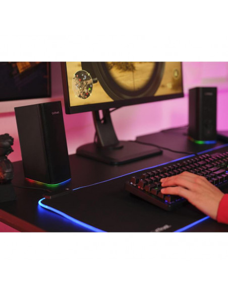 As colunas Trust GXT 612 Cetic BT proporcionam uma experiência de áudio superior, combinando som potente com um design elegante e iluminação RGB. Este sistema de som 2.0 é ideal para jogos, música e filmes, oferecendo uma imersão sonora completa.