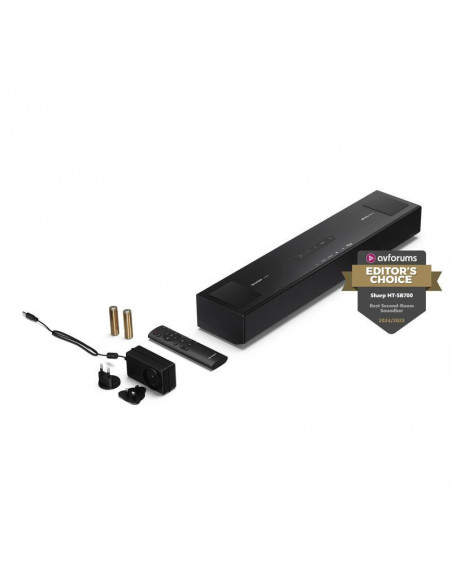 A Barra de Som Sharp HT-SB700 oferece um som envolvente de alta qualidade com Dolby Atmos, Bluetooth e uma potência total de 140W. Design compacto e elegante com 92cm de largura. HDMI eARC/CEC para controlo facilitado.
