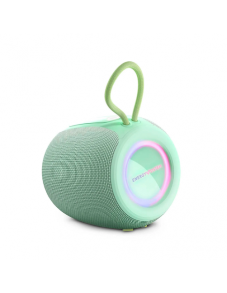 A coluna Bluetooth Energy Sistem Bloom Mint é uma opção portátil e elegante para desfrutar da sua música favorita. Com tecnologia Bluetooth 5.3, oferece uma conexão estável e de longa distância. A sua bateria de 1800mAh proporciona até 18 horas de autonomia, perfeita para um dia inteiro de música.  A classificação IPX6 garante resistência a salpicos de água, tornando-a ideal para uso em ambientes exteriores. Inclui um microfone integrado para chamadas mãos livres.