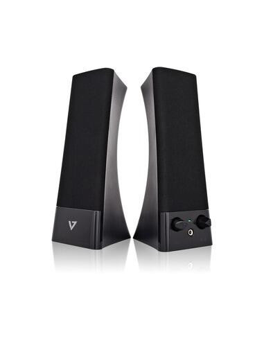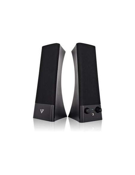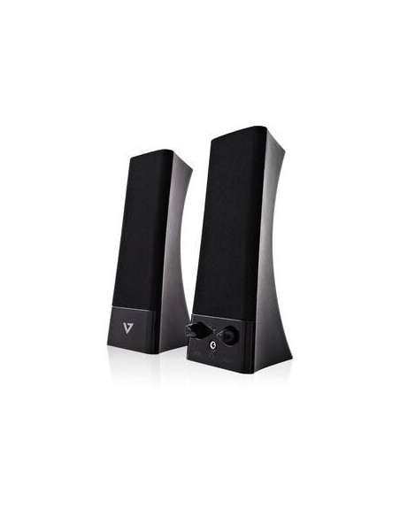 As colunas V7 apresentam um design elegante e minimalista, em cor preta. O seu tamanho compacto e o seu peso leve tornam-nas fáceis de transportar e armazenar. A sua conectividade USB simplifica o processo de ligação a outros dispositivos.