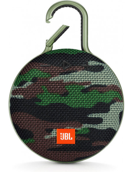 JBL Clip 3. Canais de saída de áudio: 1.0 canais, Diâmetro das colunas: 4 cm. Classificação de Energia RMS: 3,3 W, Extensão da frequência: 120 - 20000 Hz, Rácio sinal de áudio-ruído: 80 dB. Tecnologia da conectividade: Com fios e sem fios, Extensão da frequência: 2,402 - 2,48 GHz, Perfis Bluetooth: A2DP,AVRCP,HFP,HSP. Tipo de produto: Mono portable speaker, Cor da caixa: Camuflagem, Código de proteccão internacional (IP): IPX7. Uso recomendado: Tablet / Smartphone