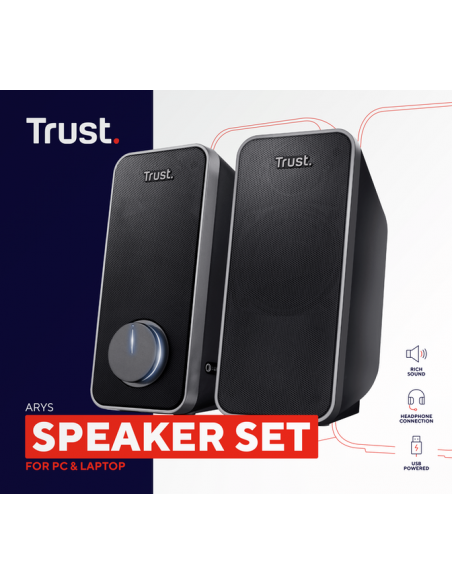 Colunas Trust Arys 2.0: 14W, USB, Altifalante Preto, 2.0 Canais