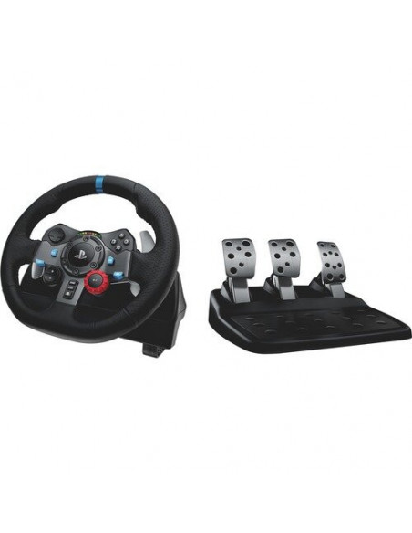 O volante e pedais Logitech G29 Driving Force proporciona uma experiência de condução realista e imersiva para os seus jogos de corrida favoritos. Compatível com PlayStation 5, PlayStation 4, PlayStation 3 e PC, este volante destaca-se pela sua construção robusta e materiais de alta qualidade. O revestimento em couro costurado à mão, o eixo do volante em aço e os pedales e patilhas de mudança em aço inoxidável garantem durabilidade e conforto.