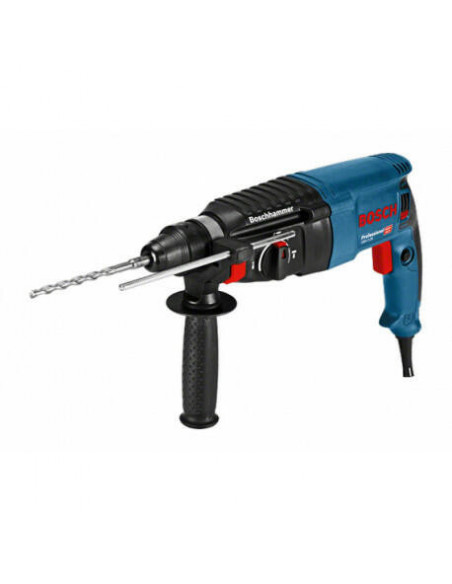 Bosch GBH 2-26 Professional. Tipo de chave: SDS Plus, Cor do produto: Preto, Azul, Vermelho. Velocidade nominal (mín.): 900 RPM, Velocidade nominal (max): 4000 RPM, Nível de vibração (perfuração com martelo): 14 m/s². Fonte de alimentação: AC, Potência de input: 830 W. Peso: 2,7 kg, Largura: 83 mm, Profundidade: 377 mm