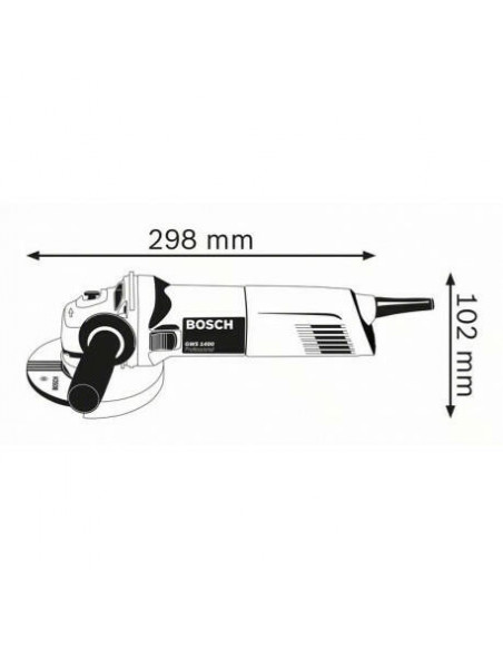 Bosch GWS 1400 Professional. Cor do produto: Alumínio, Preto, Azul, Vermelho. Diâmetro do disco de moagem: 12,5 cm, Velocidade de marcha lenta (máx.): 11000 RPM, Nível de vibração (rebarbadora): 1,5 m/s². Fonte de alimentação: AC, Potência de input: 1400 W, Potência de saída: 820 W. Peso: 2,4 kg, Altura: 102 mm, Profundidade: 298 mm