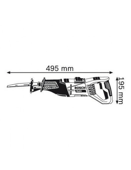 Bosch GSA 1100 E Professional. Cor do produto: Preto, Azul, Vermelho. Velocidade em vazio (máx.): 2700 spm, Comprimento do curso: 2,8 cm, Corte profundo em madeira: 23 cm. Fonte de alimentação: AC, Potência de input: 1100 W. Largura: 495 mm, Altura: 195 mm, Peso: 3,9 kg. Tipo: Com fios, Nível de ruído: 104 dB, Emissão de vibração: 18,6 m/s²