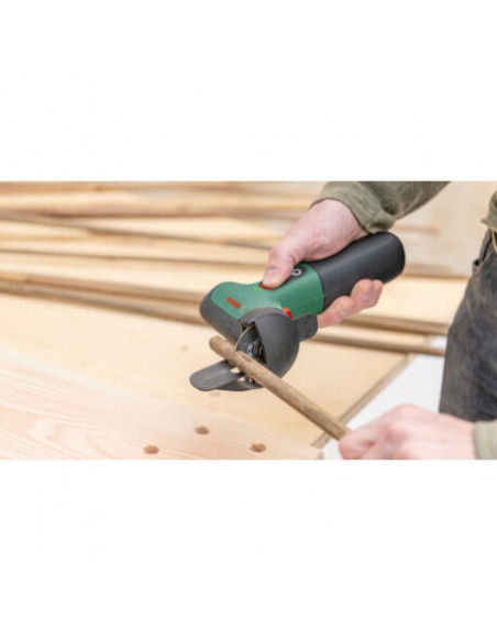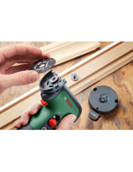 Bosch Easy Cut & Grind. Cor do produto: Verde, País de origem: Hungria. Diâmetro do disco de moagem: 5 cm, Velocidade de marcha lenta (máx.): 6000 RPM, Profundidade de corte (máx.): 1,4 cm. Fonte de alimentação: Bateria. Peso: 430 g, Largura: 210 mm, Altura: 50 mm. Número de baterias incluídas: 1 unidade(s).