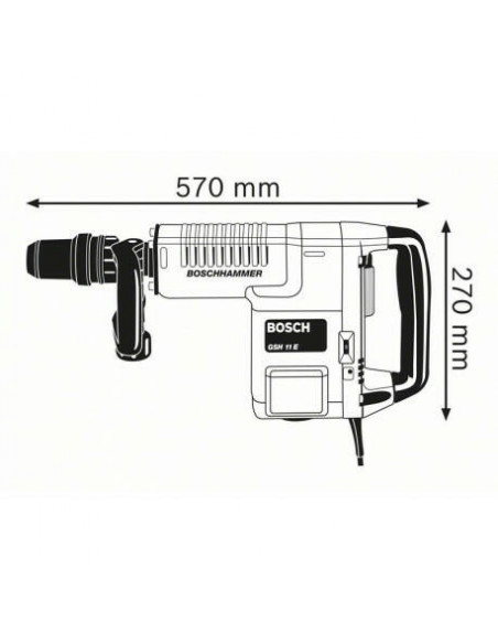 Bosch 0 611 316 703. Energia de impacto (max): 16,8 J, Taxa de impacto: 1890 bpm. Fonte de alimentação: AC, Potência de input: 1500 W. Profundidade: 570 mm, Altura: 270 mm. Peso (incluíndo bateria): 10,1 kg