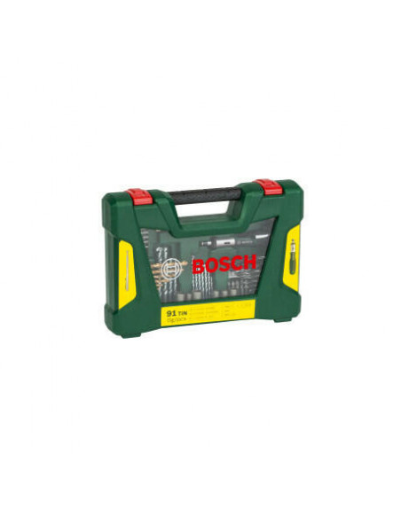 Bosch 2607017195. Uso próprio: Berbequim, Tipo de broca: Conjunto de brocas, Adequado para materiais: Metal, Pedra, Madeira. Número de brocas: 91 unidade(s), Cabeças de parafuso/pontas incluídas: Phillips, Pozidriv, Torx