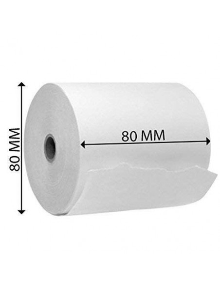 Rolo de papel térmico Nilox NX-RTNL04080, ideal para impressoras térmicas. Cada rolo mede 80 mm de diâmetro e largura, com um comprimento de 80 mm. Embalagem com 48 unidades.