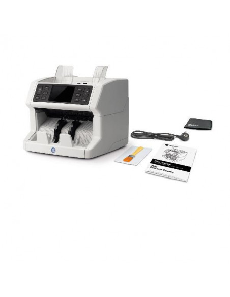 A Contadora de Notas Safescan 2850 é uma solução eficiente e segura, projetada para otimizar o processo de manuseamento de numerário em diversos contextos.  Este dispositivo combina velocidade, precisão e segurança, tornando-se ideal para escritórios, empresas e qualquer ambiente que exija uma contagem rápida e confiável de notas. A sua velocidade de contagem atinge 1500 notas por minuto, representando uma economia significativa de tempo e otimizando a produtividade. O seu ecrã de 3,5 polegadas permite uma visualização clara e imediata dos resultados da contagem, facilitando o processo de verificação.