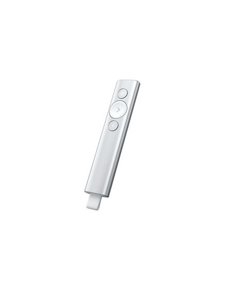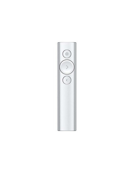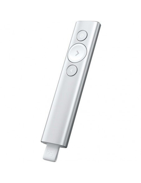 Controlo remoto sem fios Logitech Spotlight Presentation, na cor prata. Ideal para apresentações profissionais, oferece controlo preciso e navegação intuitiva.