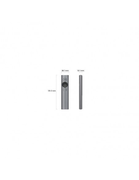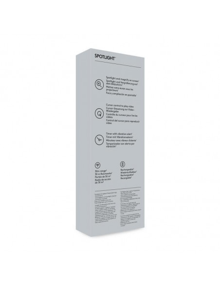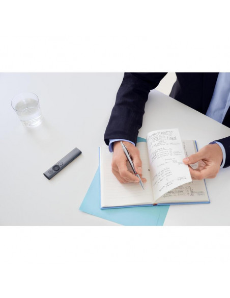 A conectividade sem fios, através de Bluetooth ou de um receptor de 2,4 GHz, garante um alcance de até 30 metros, permitindo livre circulação na sala durante a apresentação. O apresentador dispõe de três botões intuitivos que permitem controlar facilmente as diapositivos, destacar pontos importantes e realçar detalhes com precisão. A sua bateria recarregável de polímero de lítio, com uma capacidade de 85mAh, proporciona uma autonomia de até 3 meses, dependendo do uso e do equipamento. Para uma maior conveniência, possui LEDs indicadores de bateria e conectividade, mantendo-o sempre informado do estado do dispositivo.