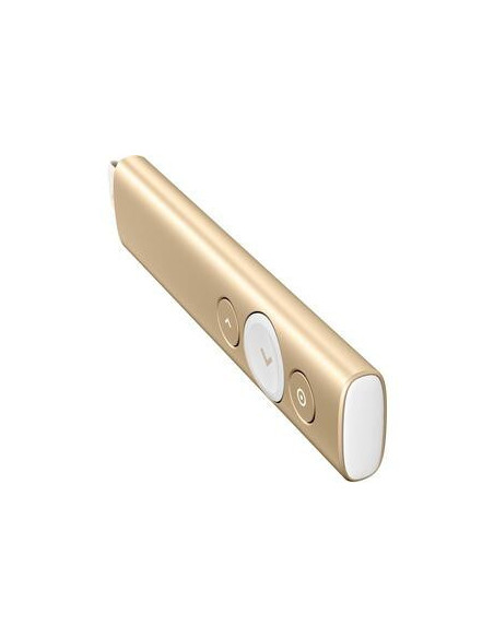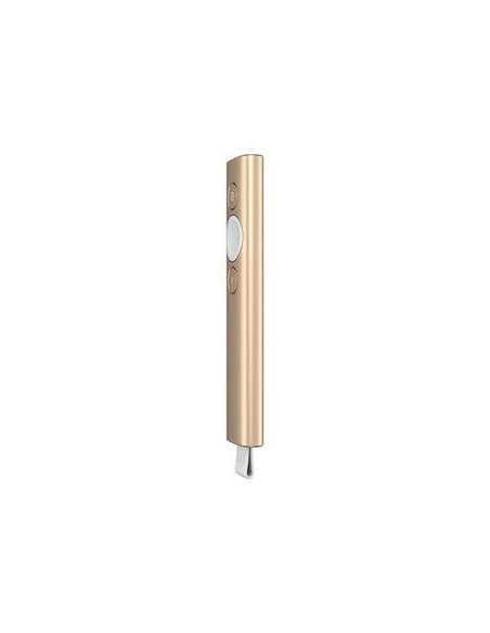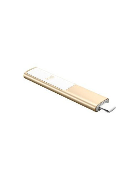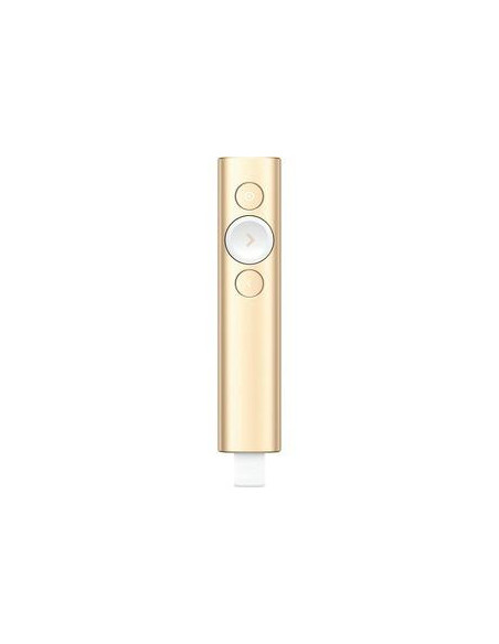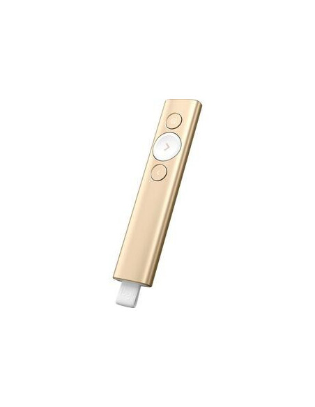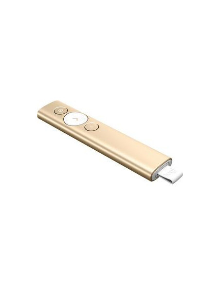 O controlo remoto universal Logitech Spotlight, com o seu design dourado elegante, proporciona um controlo intuitivo e sem fios sobre os seus dispositivos. Concebido para computadores portáteis e PCs, este controlo remoto utiliza a tecnologia Bluetooth para uma ligação estável e um alcance de até 30 metros. Desfrute de uma apresentação sem preocupações, controlando a sua apresentação com facilidade. A bateria de polímero de lítio garante horas de utilização sem interrupções. Com dimensões compactas (28,1 mm de largura, 12,1 mm de profundidade e 131,3 mm de altura), o Logitech Spotlight é portátil e fácil de transportar. A sua construção de alta qualidade garante durabilidade e um desempenho confiável. Além da sua funcionalidade, o Spotlight apresenta um design minimalista e sofisticado, que se adapta a qualquer ambiente profissional. Visite o site da Logitech para obter mais informações sobre as suas funcionalidades e compatibilidade: [http://www.logitech.com/index.cfm/ES/ES](http://www.logitech.com/index.cfm/ES/ES).