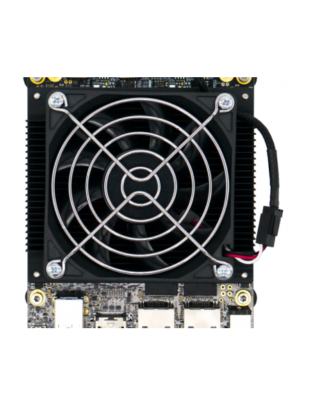 Este módulo é equipado com um processador nVidia AGX Xavier Compute Module, que oferece um poder computacional significativo para tarefas complexas de IA. Com 32GB de RAM, o módulo permite o processamento eficiente de grandes conjuntos de dados e modelos de IA. O armazenamento principal é assegurado por um SSD NVMe M.2 PCIe x4 de 128GB, que oferece acesso rápido aos dados e tempos de inicialização otimizados.