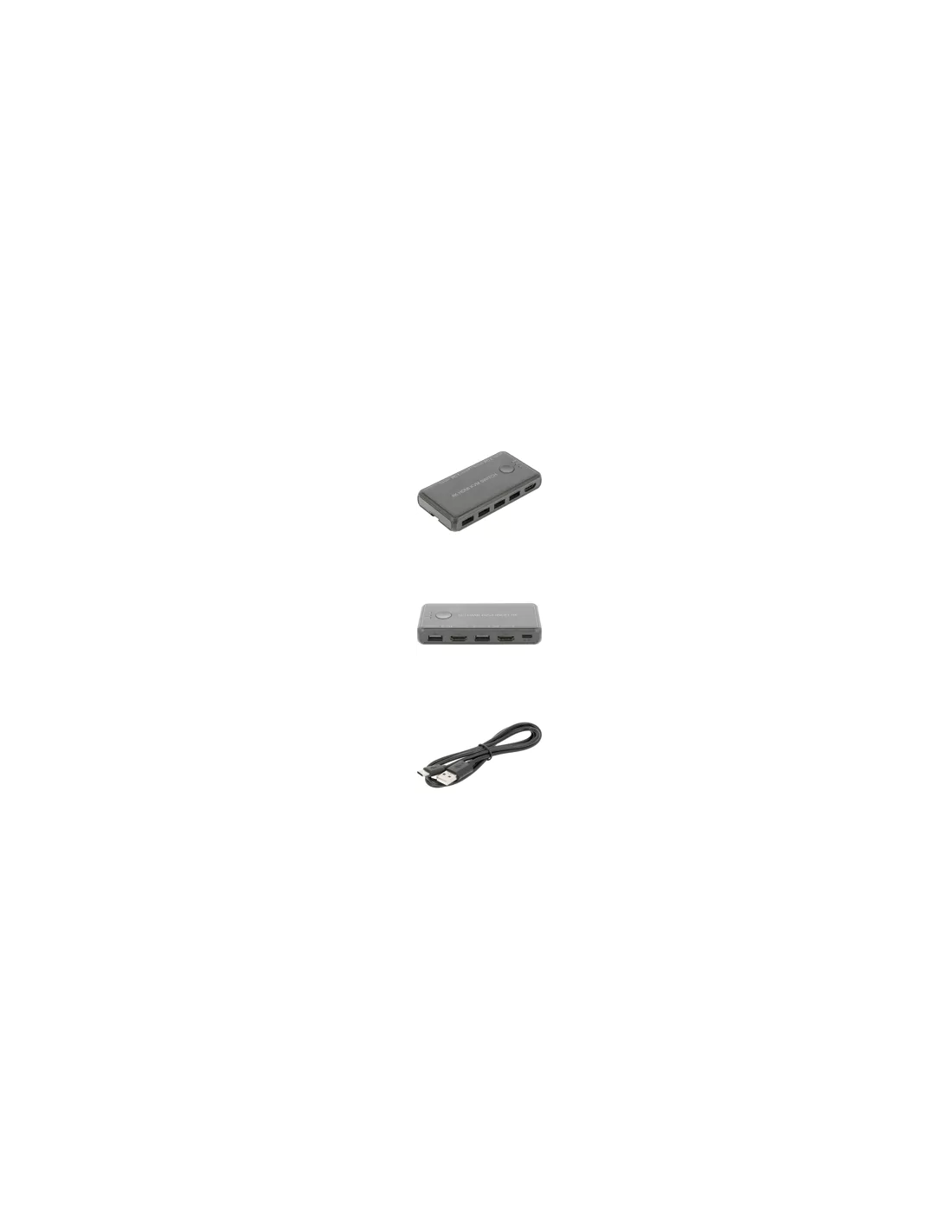 Além das conexões HDMI, o KVM também dispõe de quatro portas USB 2.0 para conectar outros periféricos, como impressoras, scanners ou pen drives, expandindo a sua funcionalidade.